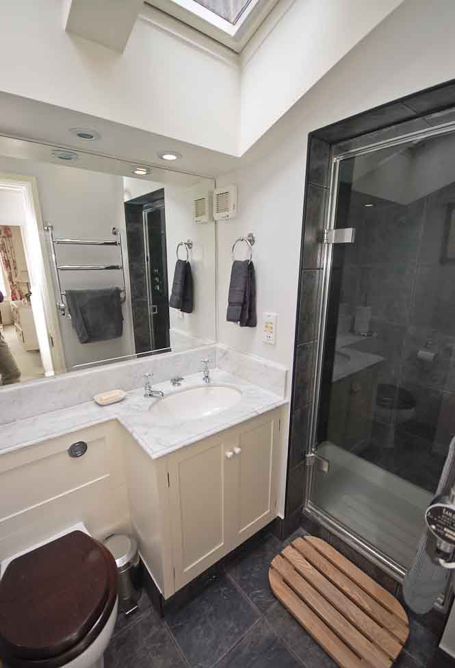 The house has 3 bathrooms, each with a toilet and washbasin and one downstairs toilet.