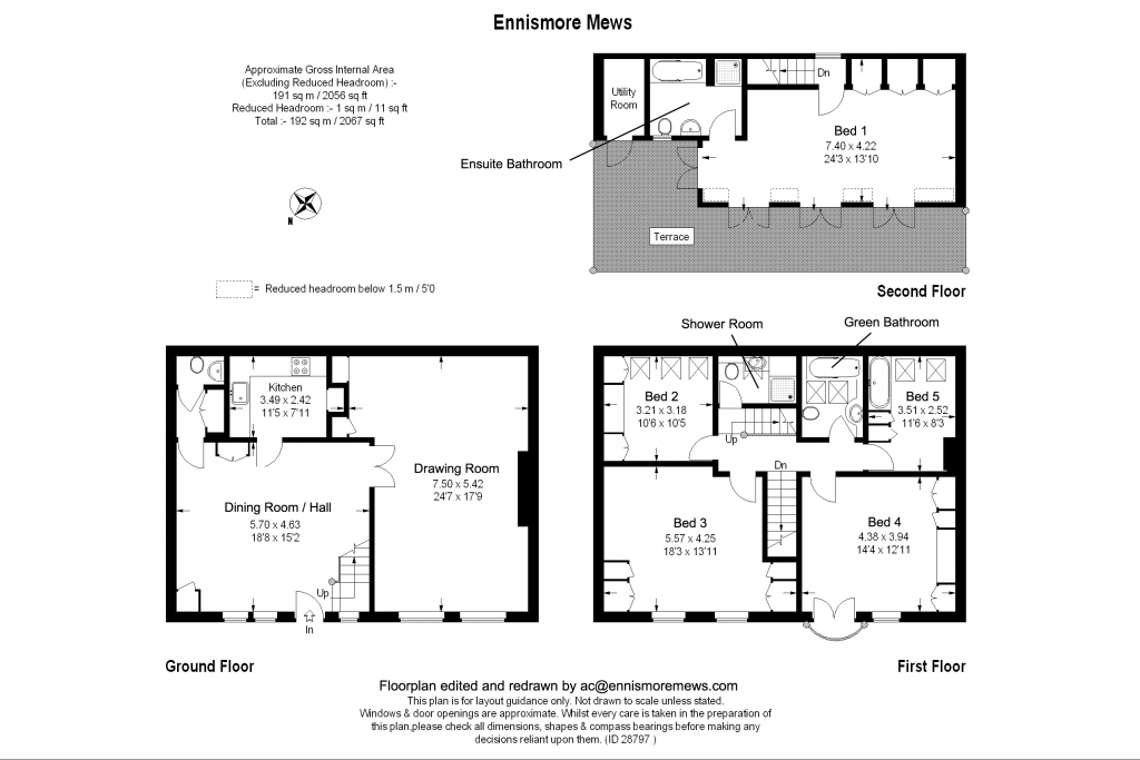 The whole house. Five bedrooms, dining room, kitchen, and drawing room with gas fire and piano. And the roof terrace.